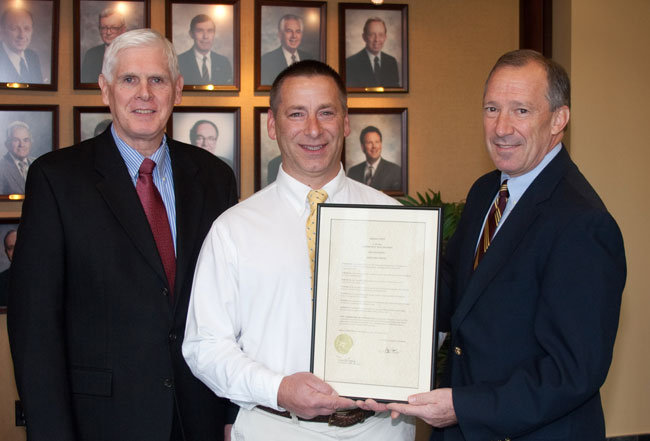 (Hazleton, PA – November 17, 2010) – The CAN DO Community Foundation recently presented Bernie Socha with a resolution recognizing him for his efforts in restoring the Ferrwood Music Camp. Foundation President Gary F. Lamont and CAN DO President Kevin O’Donnell made the presentation to Socha.